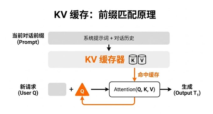 KV 缓存就是把历史 token 的 Key 和 Value 存起来,新 token 只需要算自己的 Q,然后查已有的 KV。